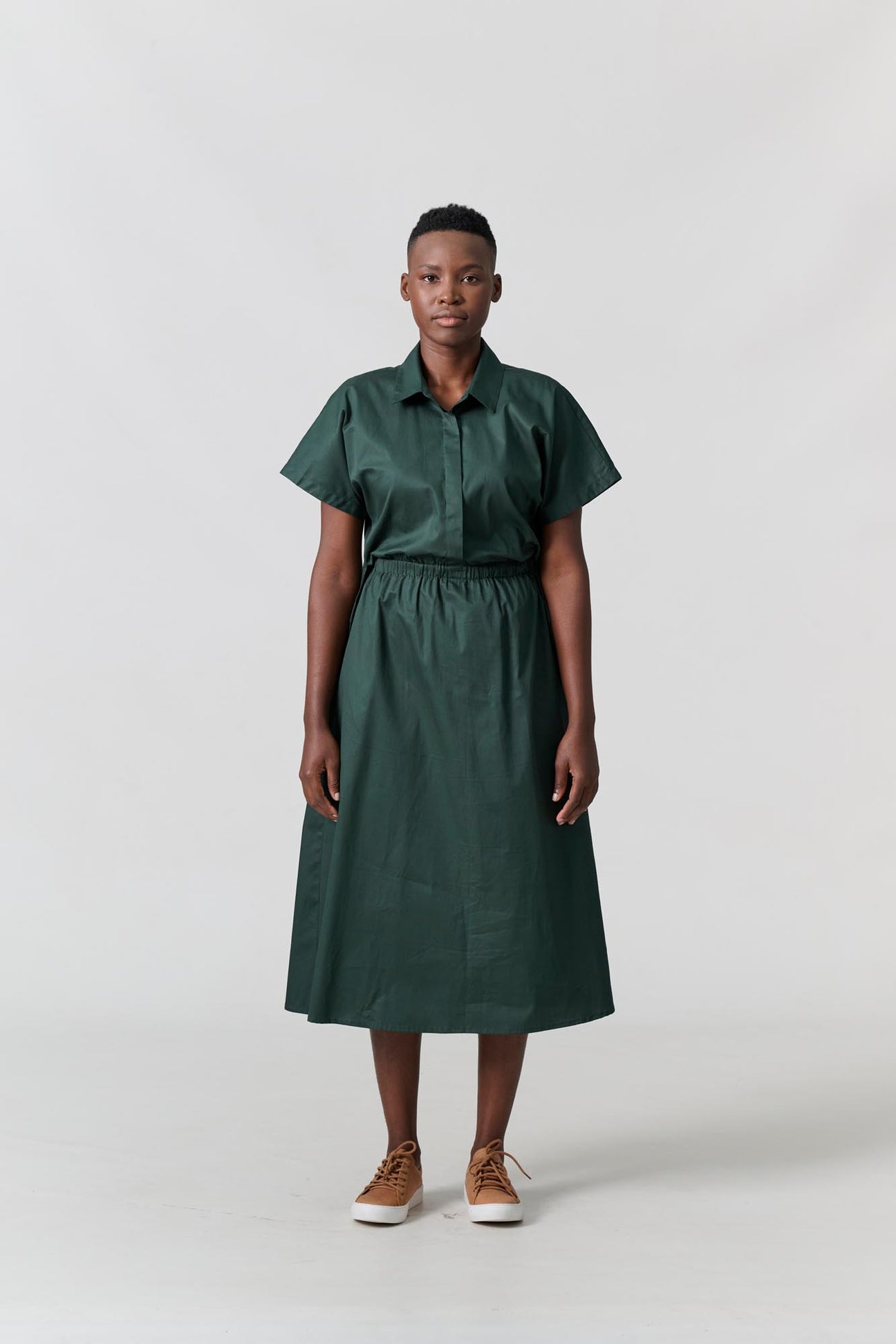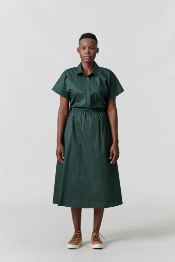 The Rey is equal parts classic and contemporary. This shirt/skirt hybrid shirtdress is crafted with a semi-attached front to give a tucked-in shirt look and feel. Cut to midi-length, the Rey takes on a relaxed fit and flare style; adjust the bungee cord waist detail to cinch the waist. Whether you lean minimalist or maximalist, the Rey is the perfect piece.