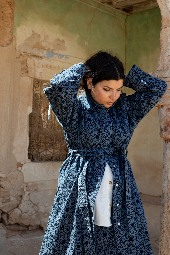 In keeping with CHEZ NOUS's DNA, the ZLIZ trench coat combines contemporary urban and traditional Tunisian styles with its elegant cut and signature shoulder.