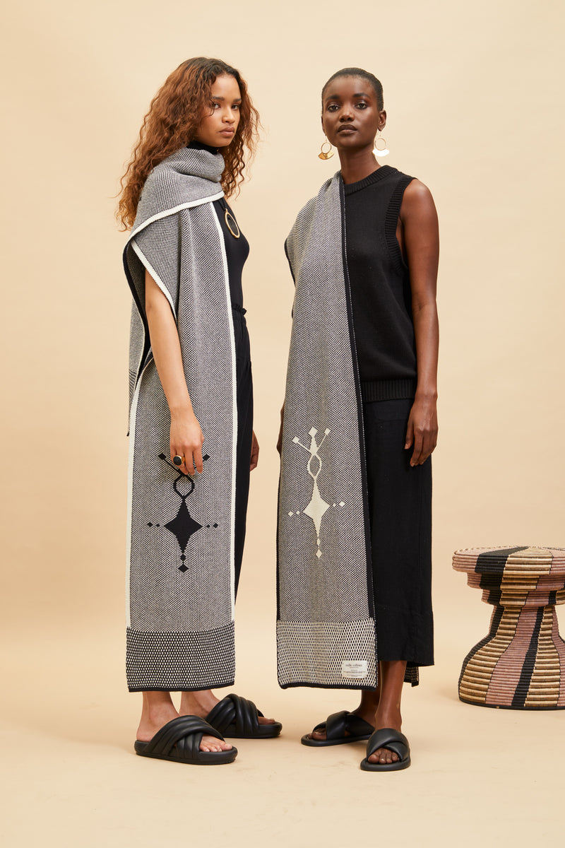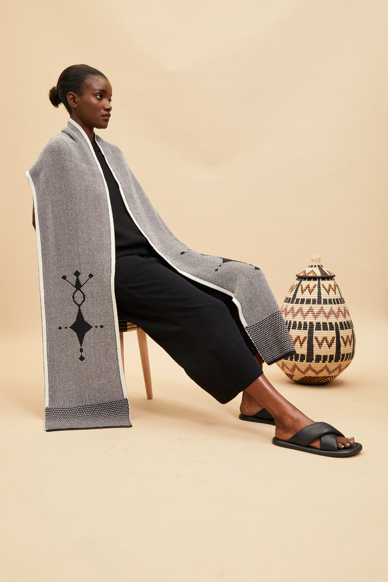 De Kichana omslagdoek wordt gebreid in Kaapstad en wordt geleverd in One Size (OS).